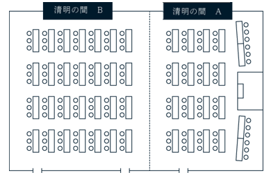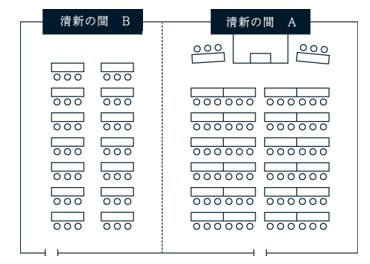 | 清新の間A+清新の間B | 204.6m2 | 108名 | 60名 | 200名 | |